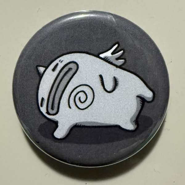 Ooo big flop!~ He’s falling all over himself and this 3.2cm and 1.25in pin-back button to find a way forward in your favour.